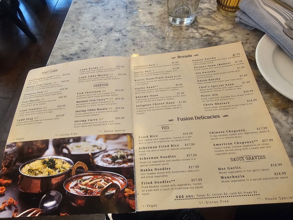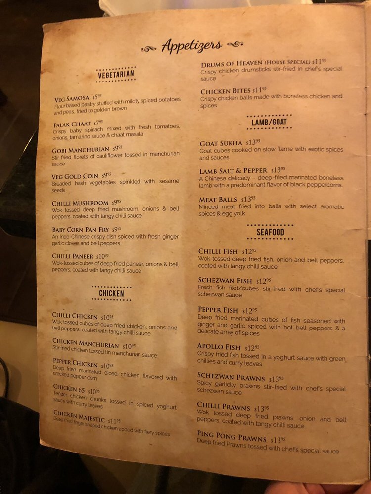 Haveli Bistro, located at 185 N High St in Columbus, OH, is a classy Indian restaurant that offers a wide range of delicious dishes for all types of diners. The menu includes a variety of vegetarian options such as Vegetable Samosa, Gobi Manchurian, Palak Chat, and Chili Mushroom. For chicken lovers, there are appetizers like Chili Chicken, Chicken Manchurian, Chicken Pakora, and Chicken 65. The Lamb and Goat section features dishes like Goat Sukha, Lamb Salt and Pepper, Meatballs Dinner, and Goat Pepper Roast. With options for vegan, gluten-free, and spicy preferences, Haveli Bistro caters to a diverse audience. The restaurant also offers amenities like outdoor seating, free Wi-Fi, and TV, making it a great spot for groups and families. Overall, Haveli Bistro provides a fantastic dining experience with a mix of traditional and innovative flavors.