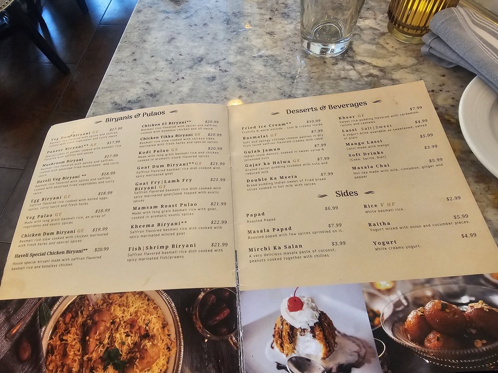 Haveli Bistro Menu
